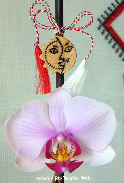 Mărțișorul este realizat din lemn, tăiat la traforaj, după un model original.