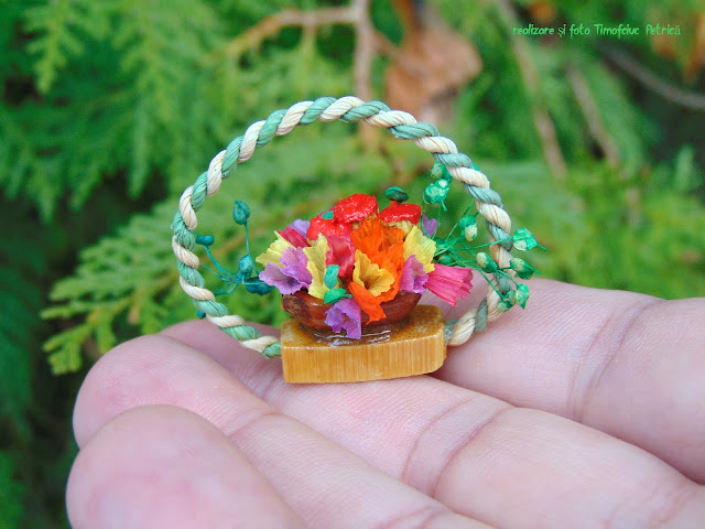 Se umple coșulețul cu flori folosind o mică pensetă !