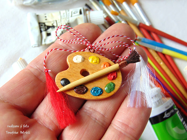 Mărțișorul este realizat din lemn, tăiat la traforaj, după un model original.